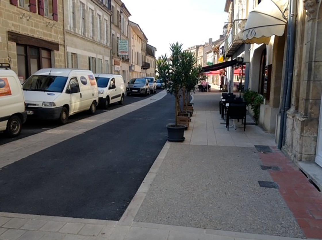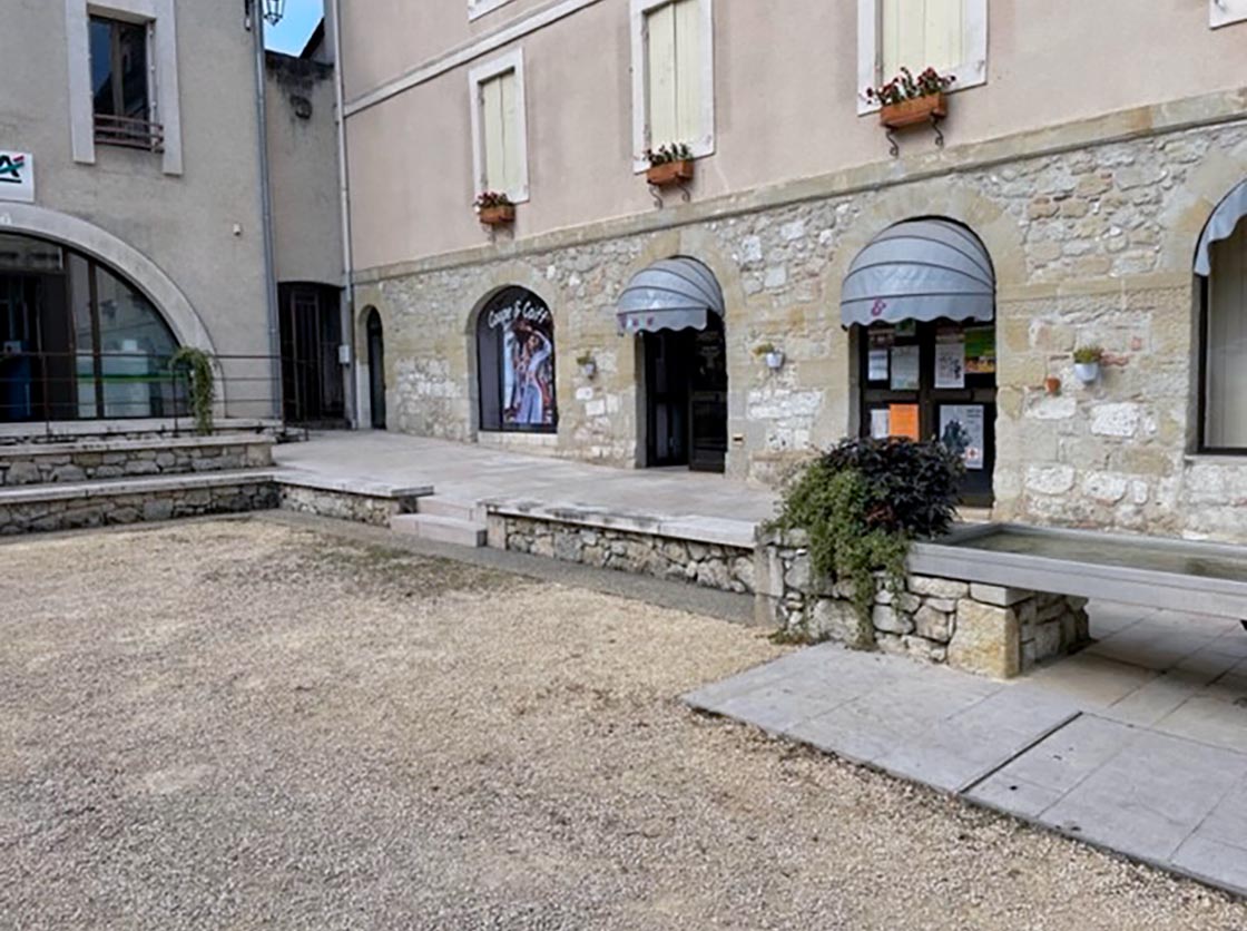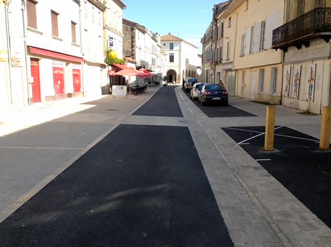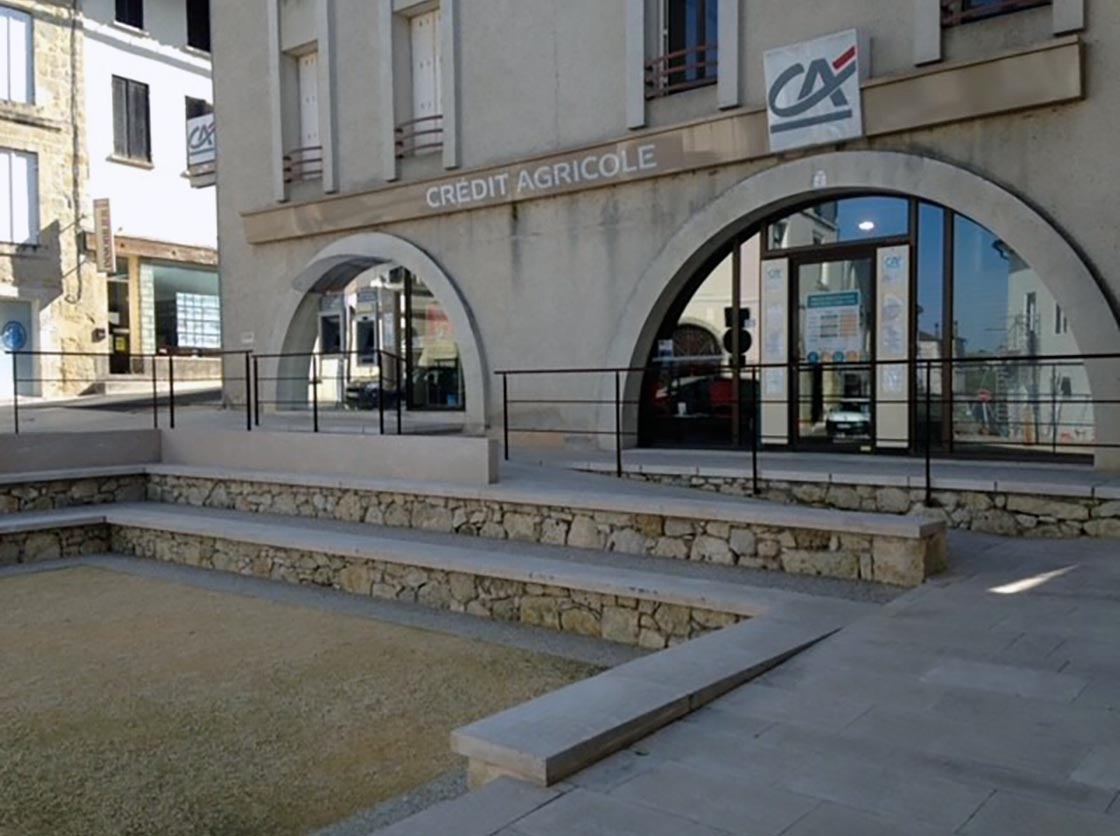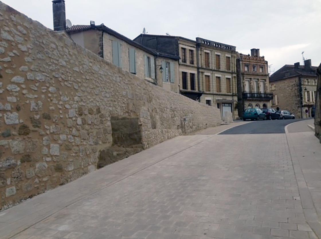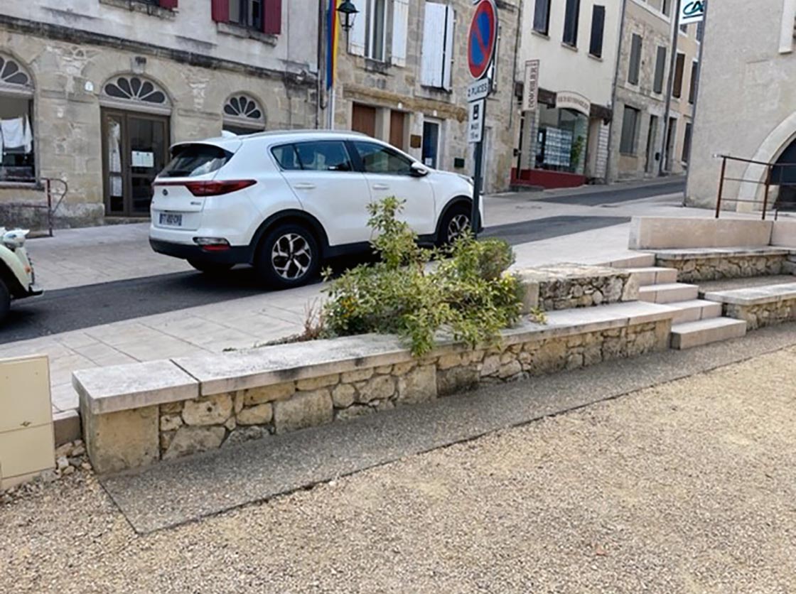 Nous avons créé une place, des gradins en pierre et moellons naturels, un puit en pierre, posé un banc en pierre naturelle et crée une main courante tout en mettant en place la signalisation verticale et horizontale.