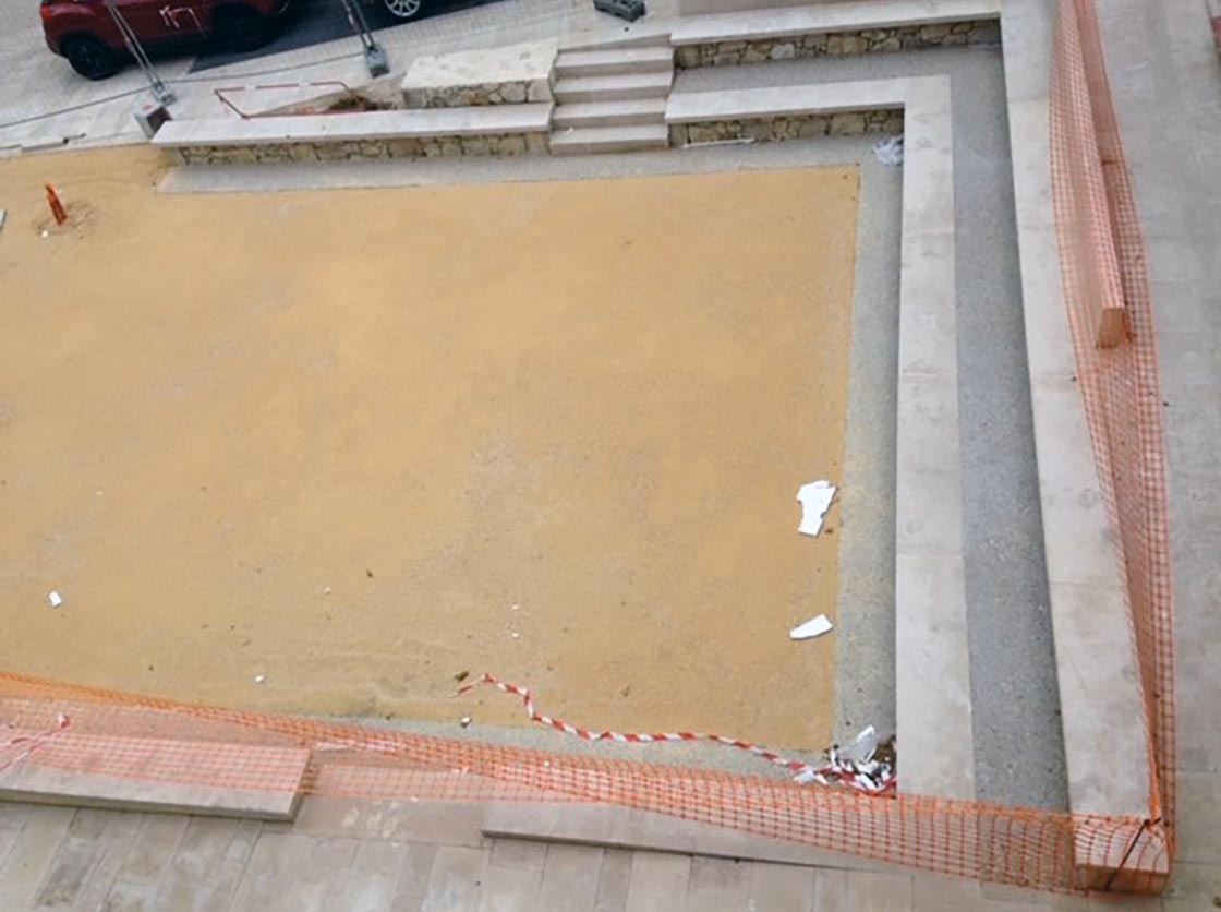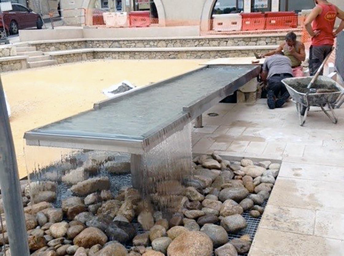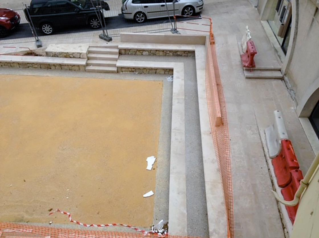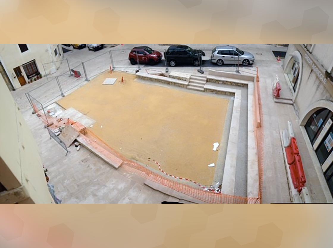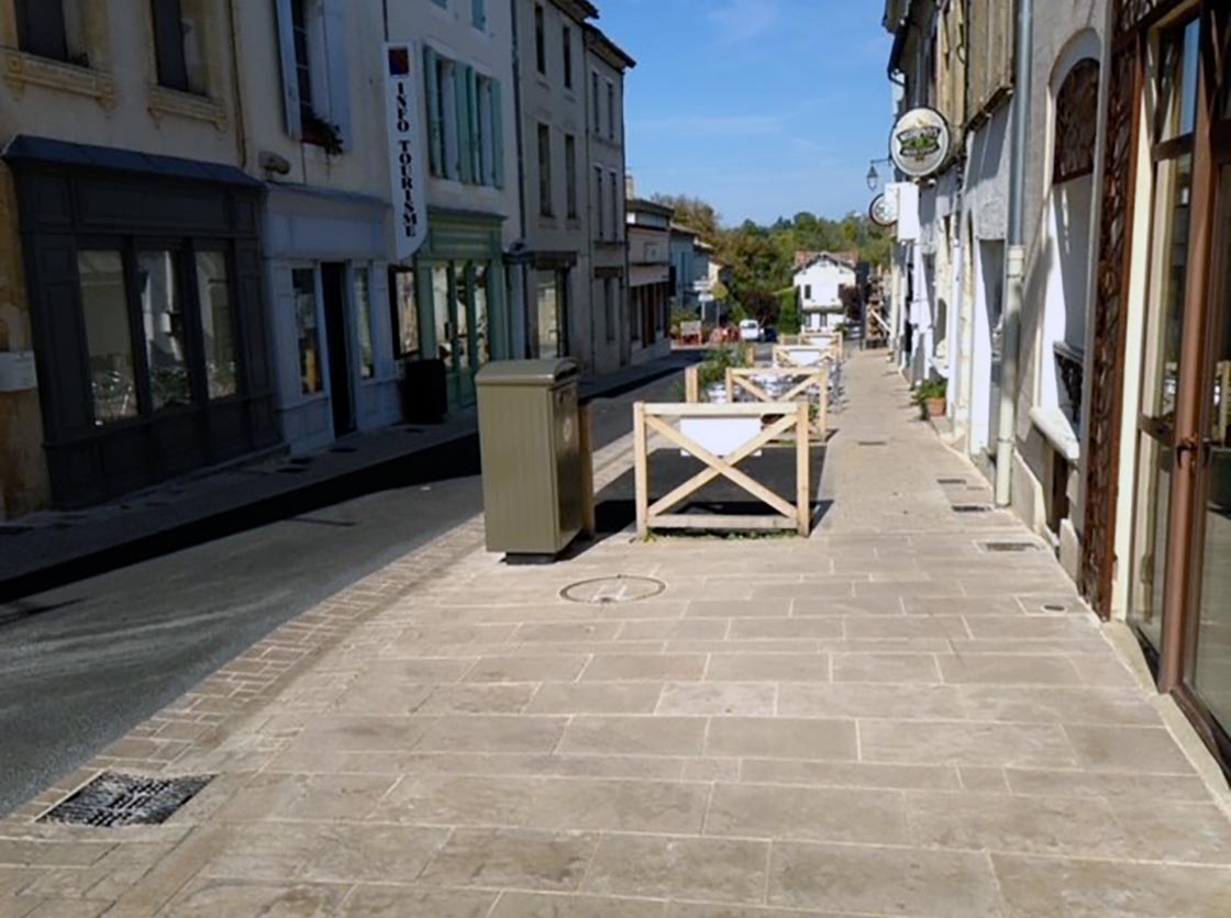Nous avons créé une place, des gradins en pierre et moellons naturels, un puit en pierre, posé un banc en pierre naturelle et crée une main courante tout en mettant en place la signalisation verticale et horizontale.